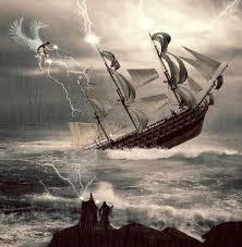 Alonso, King of Naples, and his court are travelling home from the wedding of Alonso’s daughter in Tunisia when their ship is threatened by a violent storm at sea. The courtiers and the crew of the ship argue as it sinks out of frustration and fear.